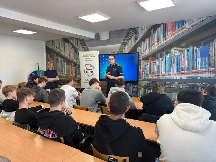Duży nacisk położyli na zagrożenia w cyberprzestrzeni. W centrum rozmowy znalazły się cyberprzemoc, hejt oraz nieodpowiedzialne udostępnianie wizerunku i danych osobowych. Jak podaje Policja, młodzież musi wiedzieć, że w sieci każde działanie zostawia ślad, a błędna decyzja może szybko przerodzić się w poważny problem.